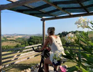 Uitgebreid genoten van al het lekkers uit de regio of wil je ook tijdens de vakantie wat aan de spieren en conditie doen? De “gym” buiten in de schaduw van een pergola bestaat uit een Concept 2 roeimachine, een spinfiets, gewichtjes en yogamatjes. Heerlijk voor een kleine workout en dan via de buitendouche zó het zwembad in!